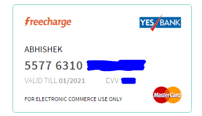 1. Copy the 16 digit card number and other details as required from your FreeCharge account and enter in the “Credit Card” option on the checkout page of your favourite Indian shopping website or mobile app.